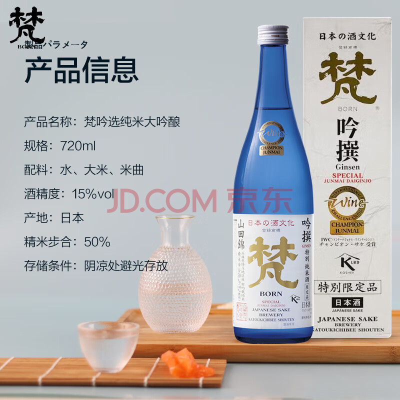 商品相册:梵吟选清酒 720ml 纯米大吟酿 日本进口 甘口 日式佐酒 礼盒装第