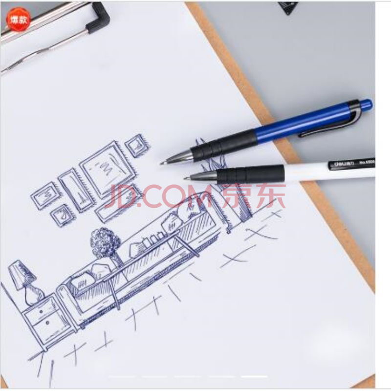 商品相册:得力(deli)6505圆珠笔中油笔 0.7mm子弹头按动笔原子笔 办公用品 蓝色 24支/2盒装第1张/共4