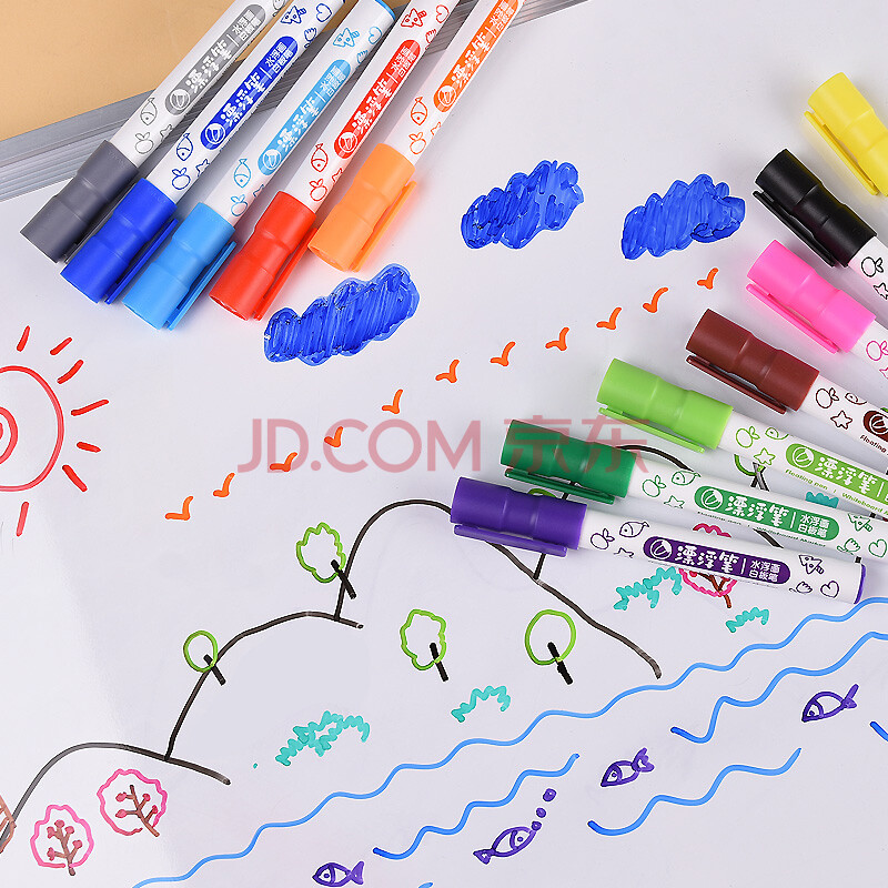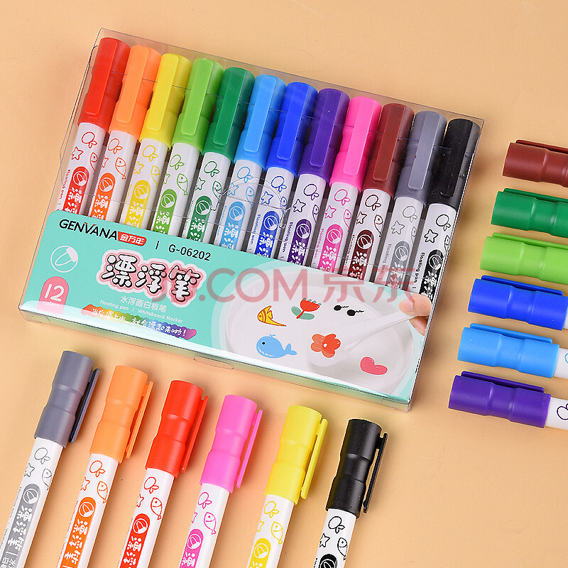 商品相册:金万年【漂浮笔】12色水浮画白板笔儿童玩具水彩画笔水中画作画悬浮可擦小学幼儿园 G-06202第
