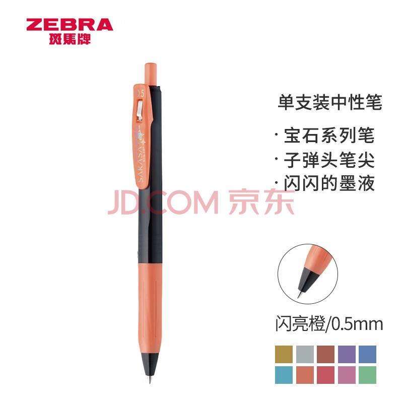 商品相册:斑马牌(ZEBRA)JJ15宝石系列中性笔 0.5mm按动中性笔子弹头签字笔 学生手账笔标记笔 JJ15-SOR 闪亮橙第