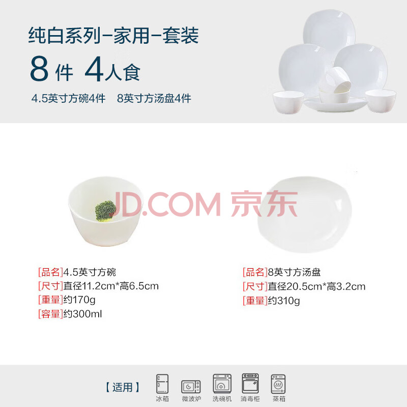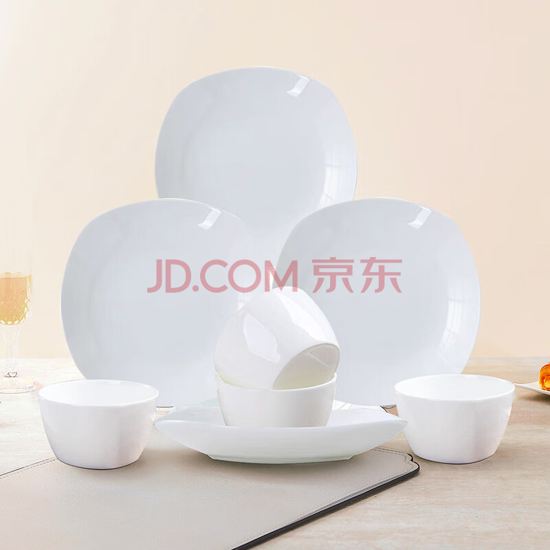 商品相册:斯凯绨(Sky Top)碗盘碟陶瓷餐具套装骨瓷纯白家用乔迁微波炉4人份8头方形第