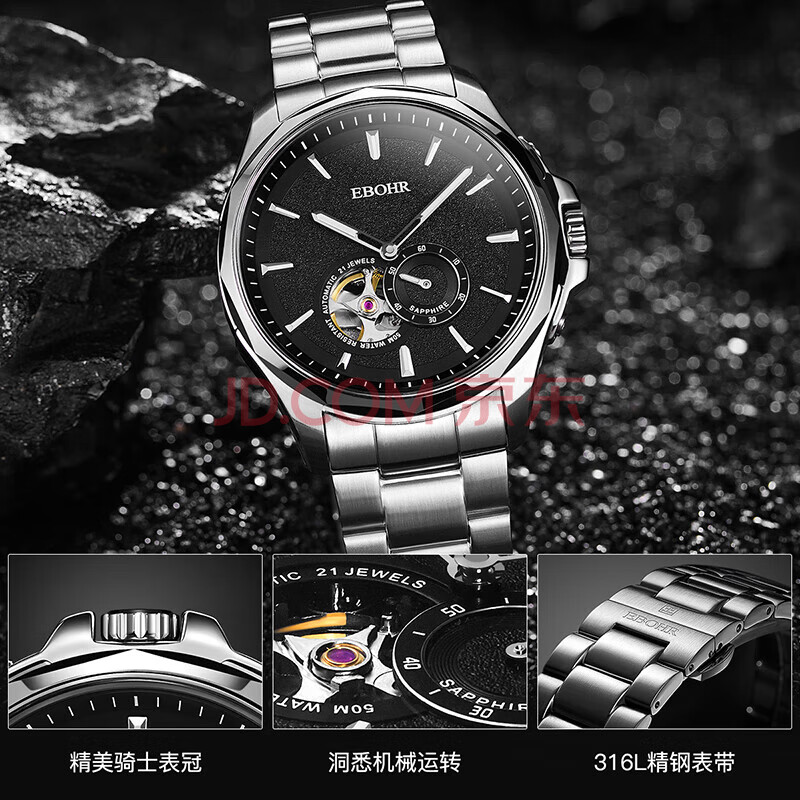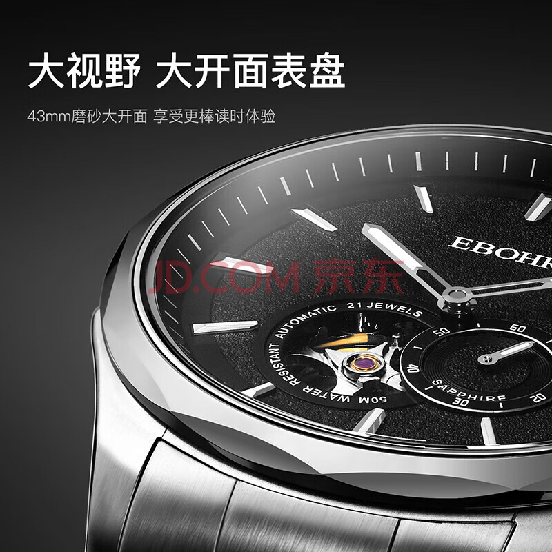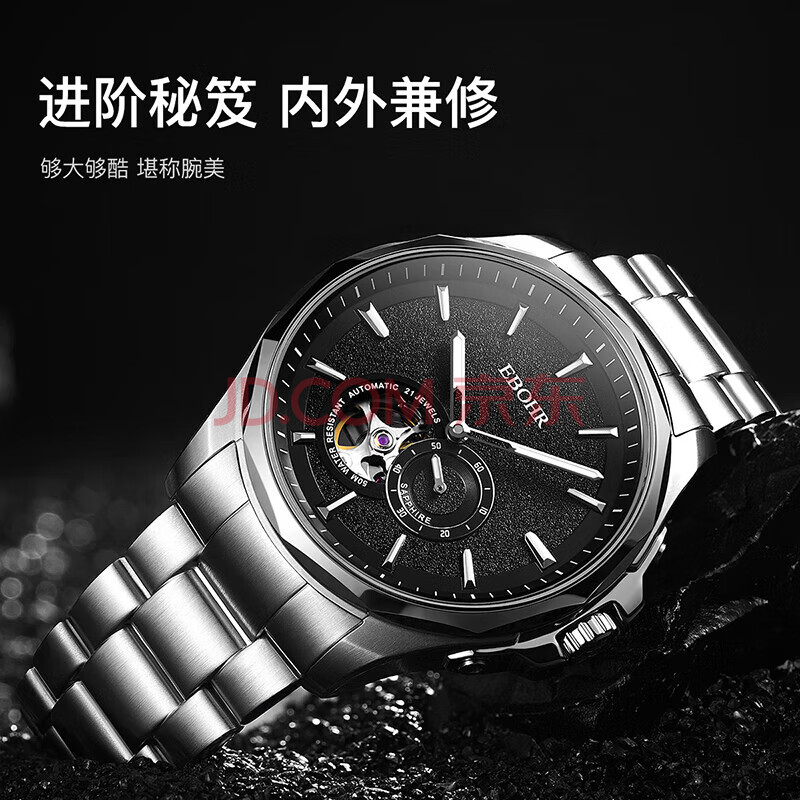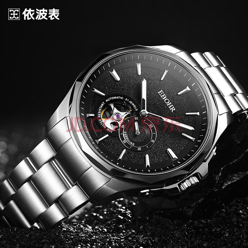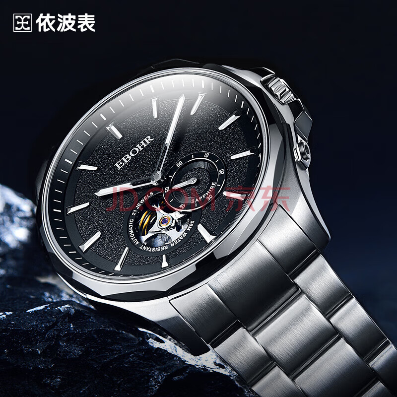 商品相册:依波(EBOHR)手表男 探索者节日礼物系列钨钢圈镂空钢带男士机械腕表51460138第