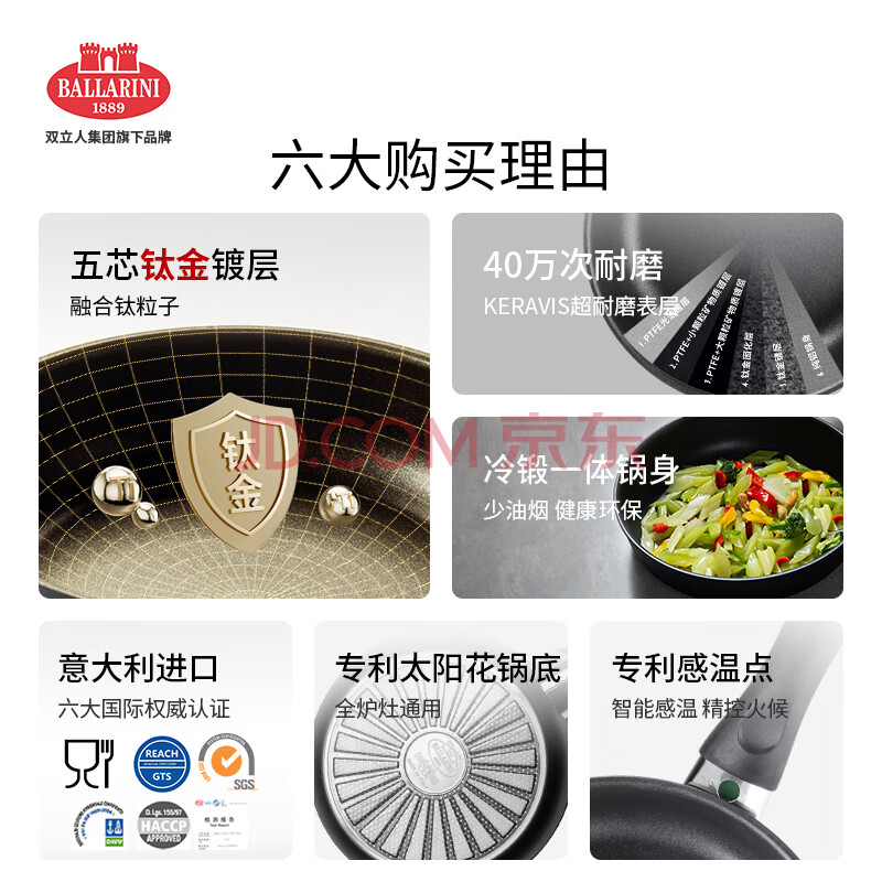 商品相册:巴拉利尼(BALLARINI)不粘锅平底煎锅钛金煎牛排锅一人食早餐电磁炉通用威尼斯黑20cm第