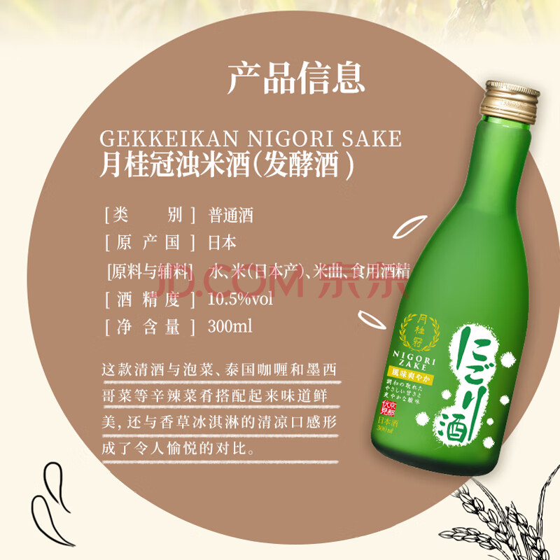 商品相册:月桂冠(Gekkeikan)浊米清酒 300ml 发酵酒 日本进口第