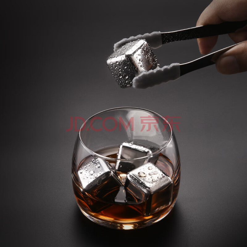 商品相册:CLITON速冻304不锈钢冰块威士忌洋酒啤酒饮料冰酒石冰粒子方形4颗送夹子第