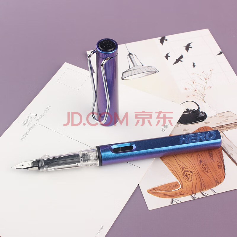 商品相册:英雄(HERO) 钢笔359B正姿EF尖薄厚片工艺学生练字 (附加6支墨囊)铱金签字笔炫彩变色蓝 EF尖第