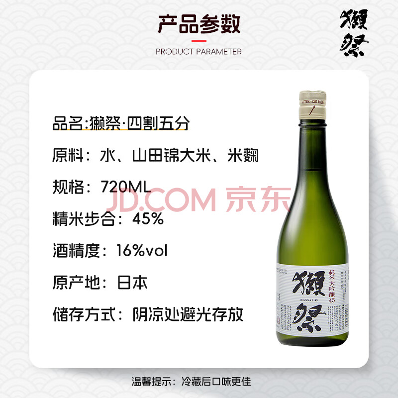 商品相册:獭祭Dassai 45四割五分清酒 720ml 纯米大吟酿 日本进口 礼盒装第
