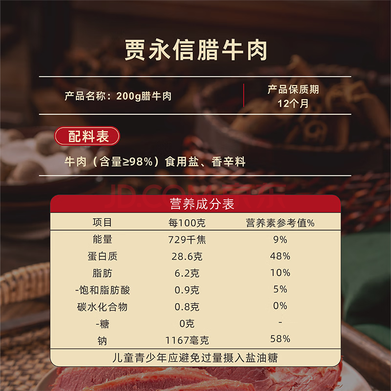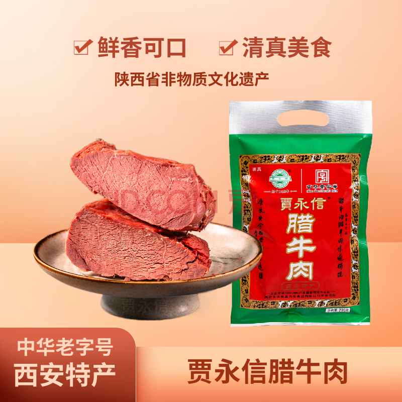 商品相册:贾永信腊牛肉200g中华老字号陕西西安特产回民街桥梓口美食开袋即食第