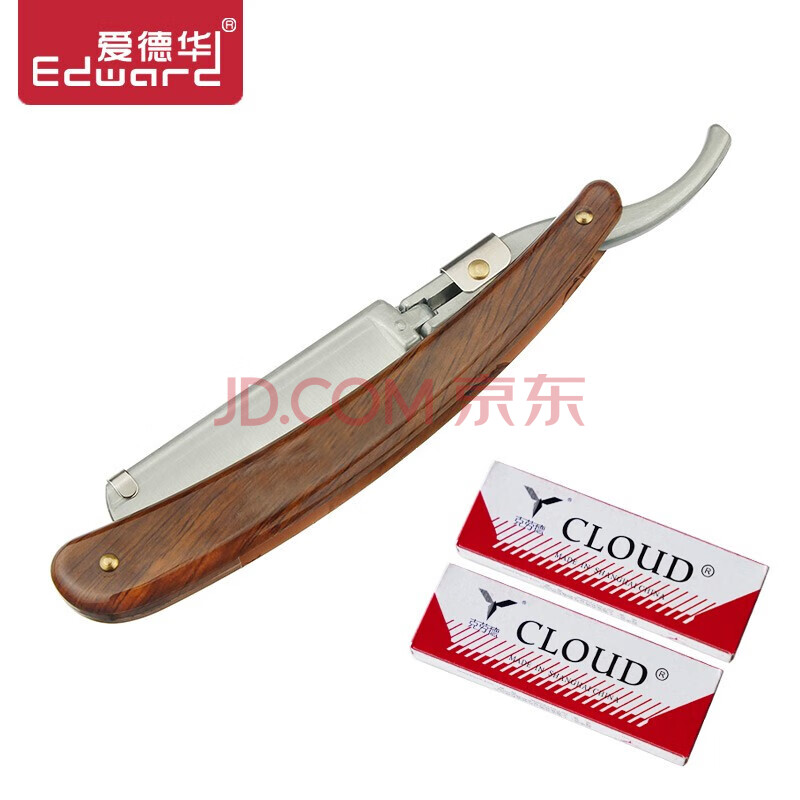 商品相册:爱德华(EDWARD) 理发专业刮刀老式手动剃须刀刮胡刀木纹手柄刮刀A77配两盒刀片第