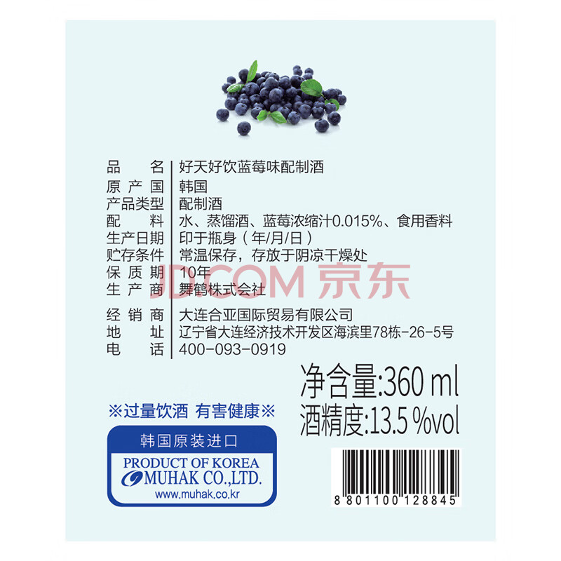 商品相册:好天好饮(GOODDAY)烧酒 360ml 13.5度 蓝莓味 韩国进口 微醺 低度酒第