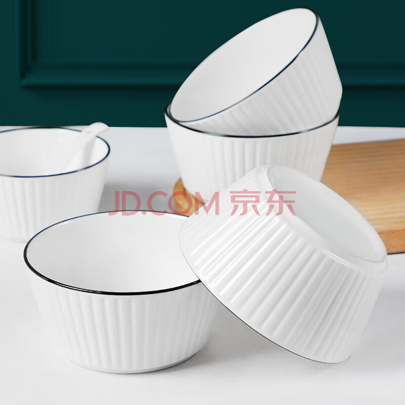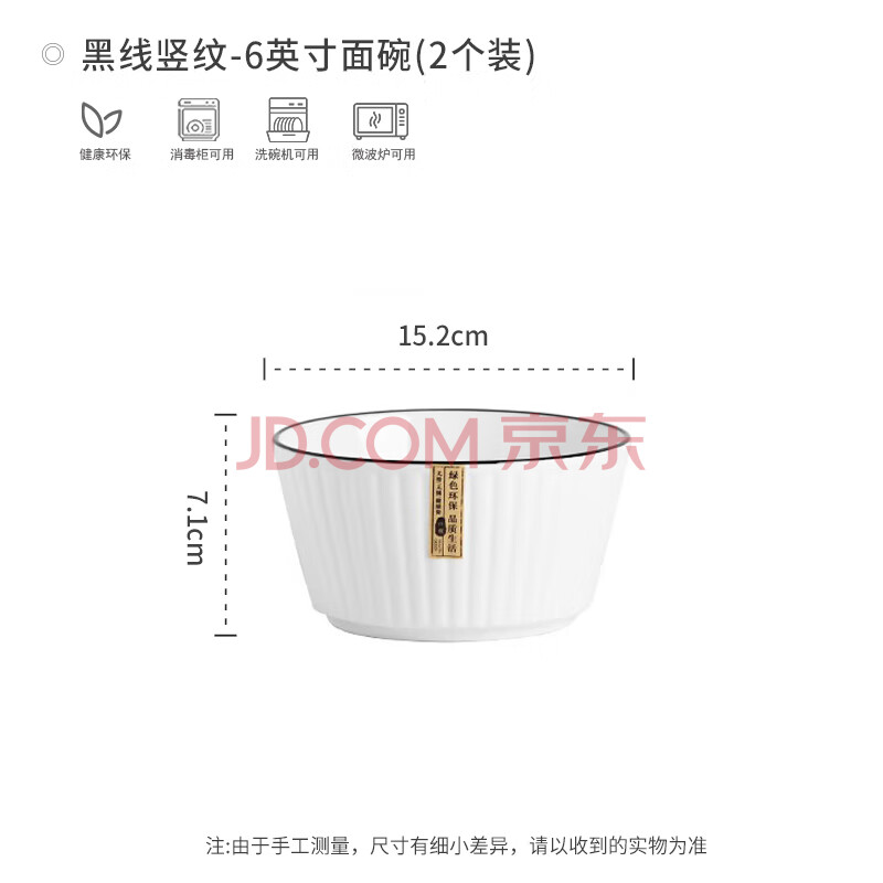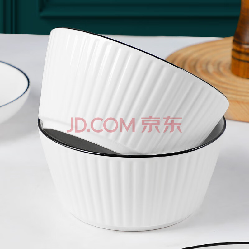 商品相册:浩雅釉下彩景德镇陶瓷面碗大碗饭碗汤碗吃面碗黑线竖纹6英寸面碗2个装第