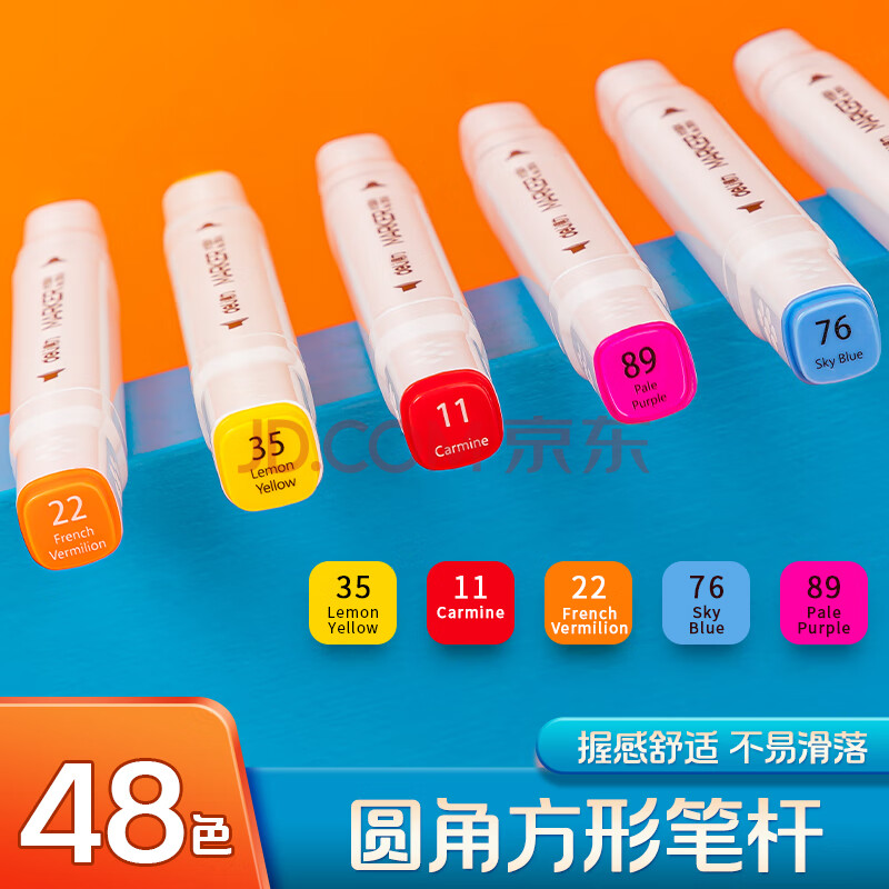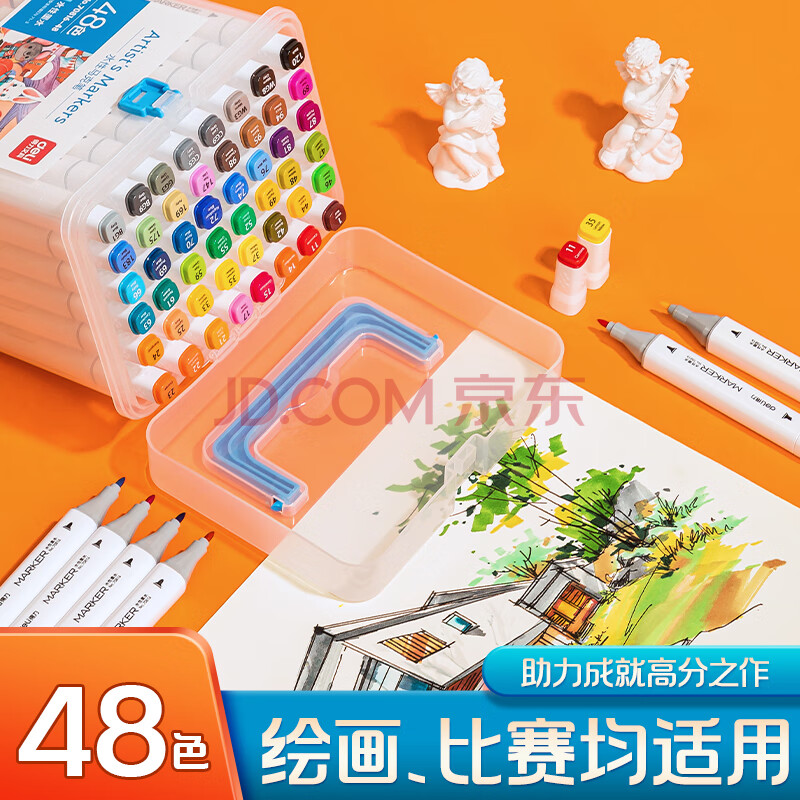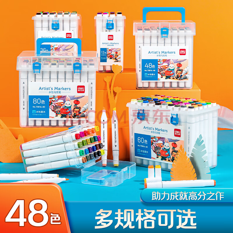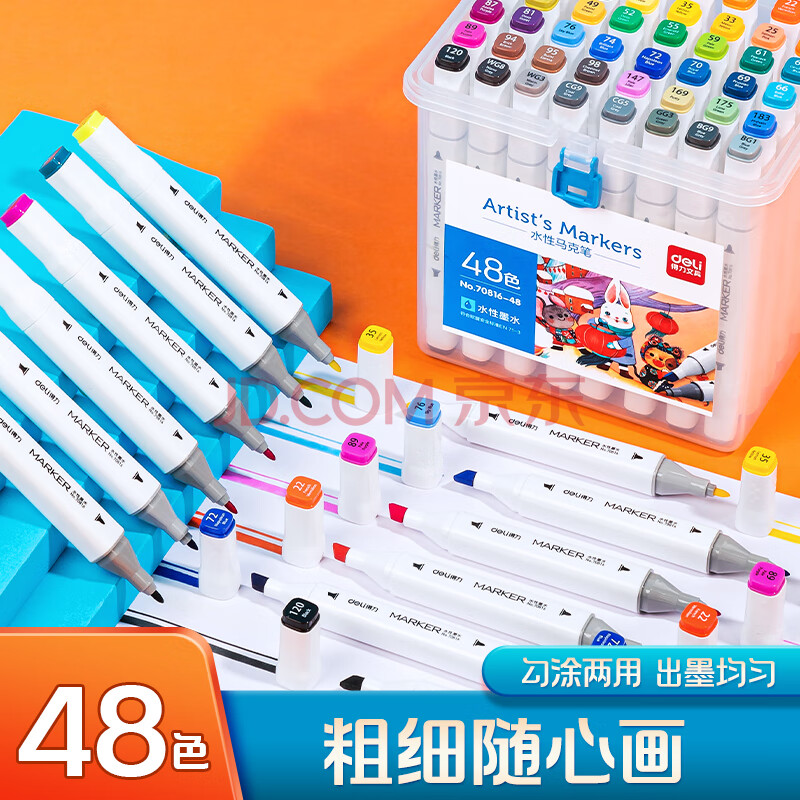 商品相册:得力(deli)水性马克笔48色双头方杆大容量速干学生元旦树常用款水彩笔勾线笔绘画荧光笔水彩笔礼物美育HM362第