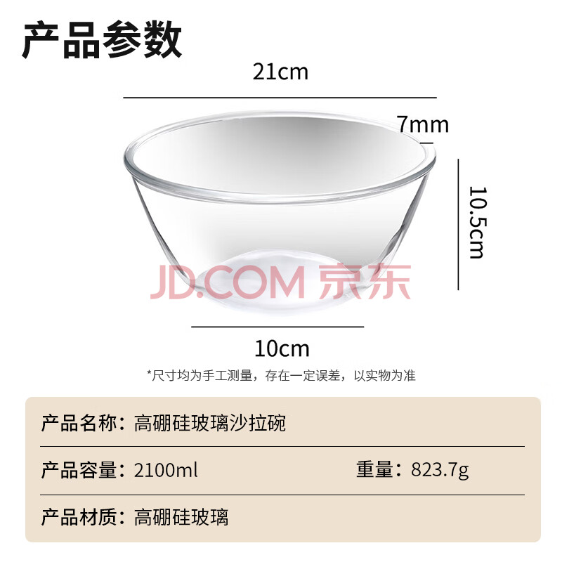 商品相册:拜杰玻璃碗水果沙拉碗玻璃盆和面盆透明碗打蛋盆蛋糕烘焙碗2100ML第