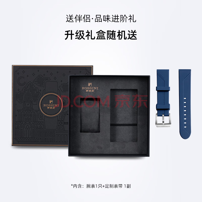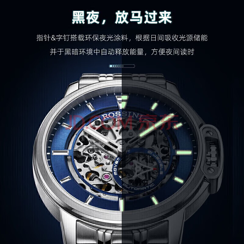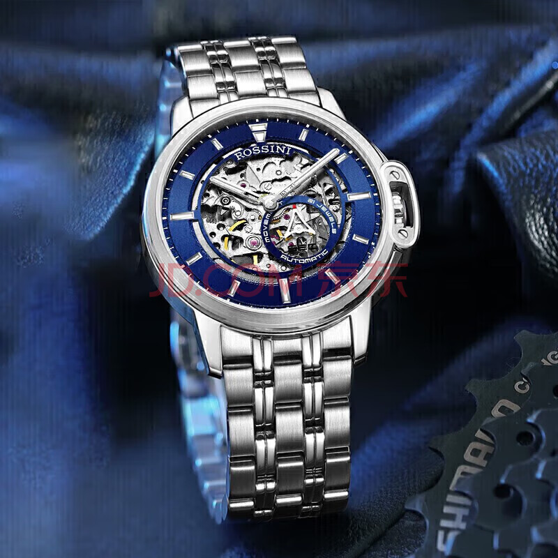 商品相册:罗西尼(ROSSINI)手表男机械表勋章蓝盘钢带生日礼物送男友国表蓝色镂空 921793第
