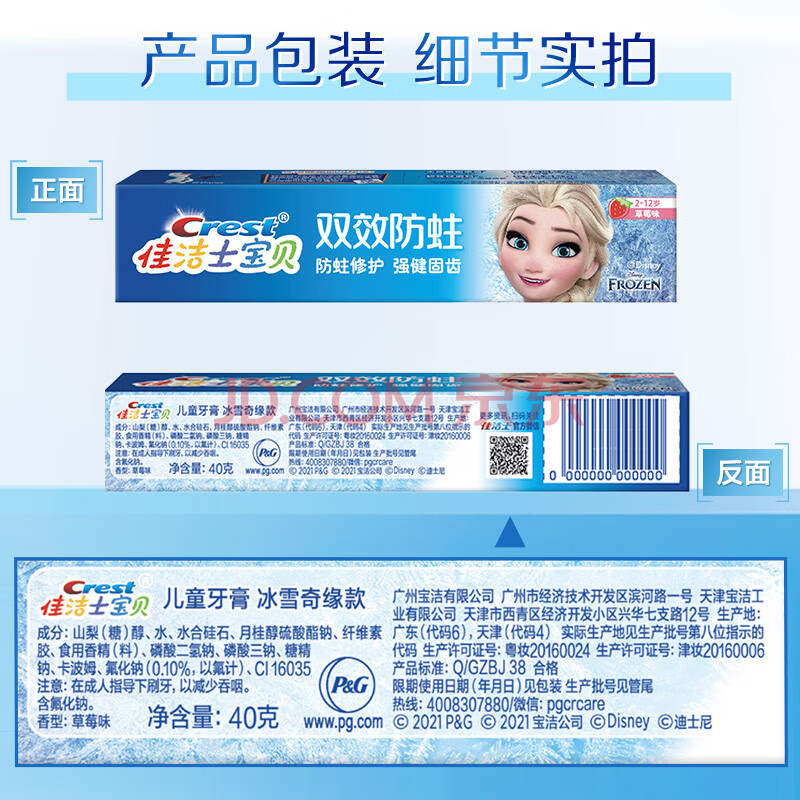 商品相册:佳洁士2-3-6-12岁换牙期热销榜儿童牙膏防蛀冰雪奇缘40g京东自营第