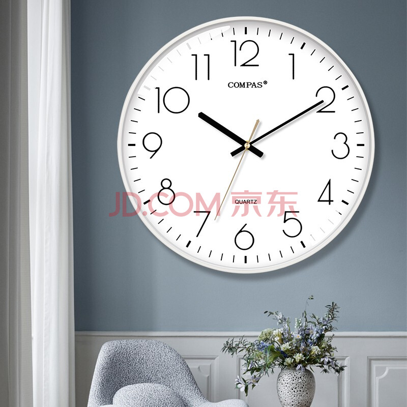 商品相册:康巴丝(Compas)挂钟 创意简约钟表客厅石英钟表挂墙卧室时钟C3242 纯洁白 28cm第