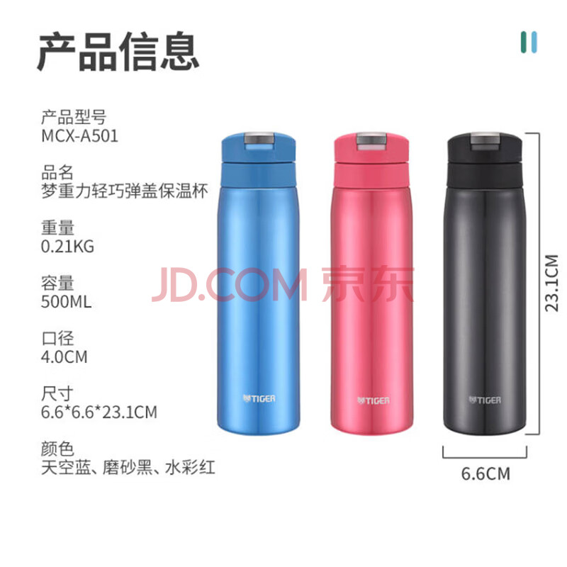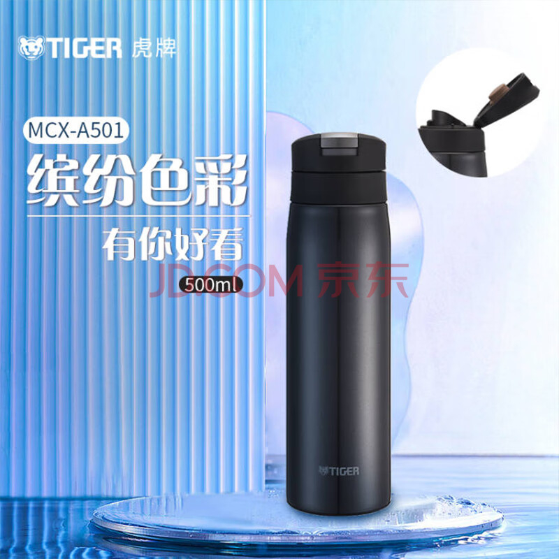 商品相册:虎牌(TIGER)梦重力弹盖不锈钢保温保冷杯真空户外水杯MCX-A501磨砂黑500ml第