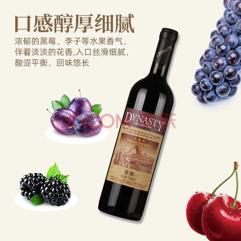 商品相册:王朝(DYNASTY)玖玖赤霞珠 干红葡萄酒750ml*6瓶 热红酒国产整箱装第