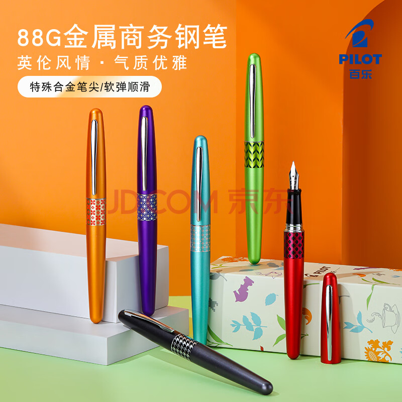商品相册:百乐(PILOT)88G钢笔商务签字笔金属笔杆办公实用学生练字专用成人书法礼物 FP-MR3 紫色圆圈M尖第