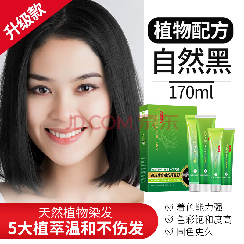 商品相册:韩金靓染发剂清水黑发染发膏一梳黑无刺激焗油膏男女士通用自然黑170ml第