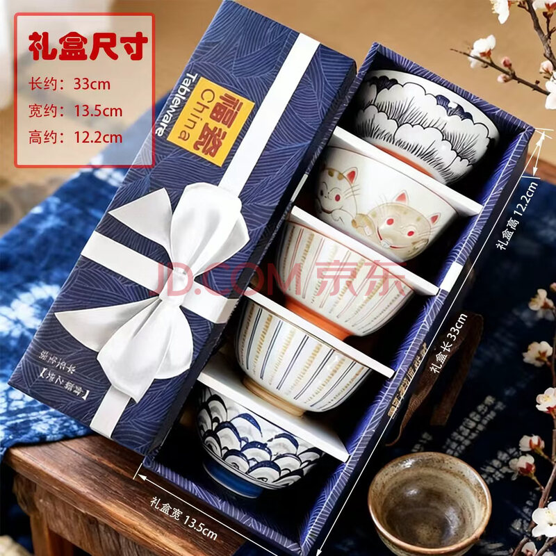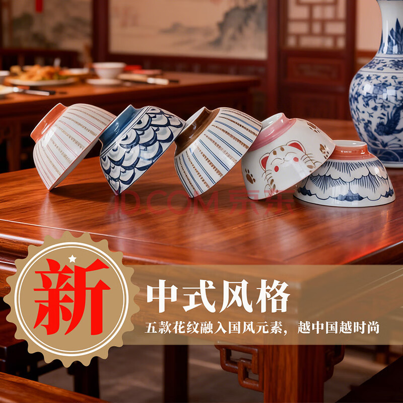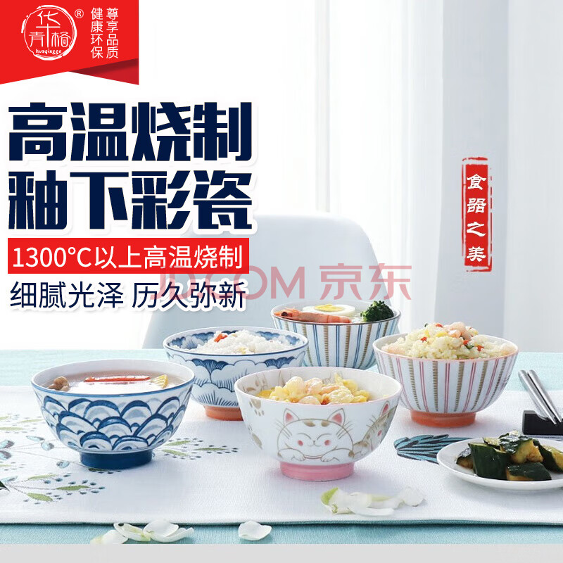 商品相册:华青格4.5英寸家用饭碗汤碗一人一碗碗套装5只装 团购员工福利伴手礼第