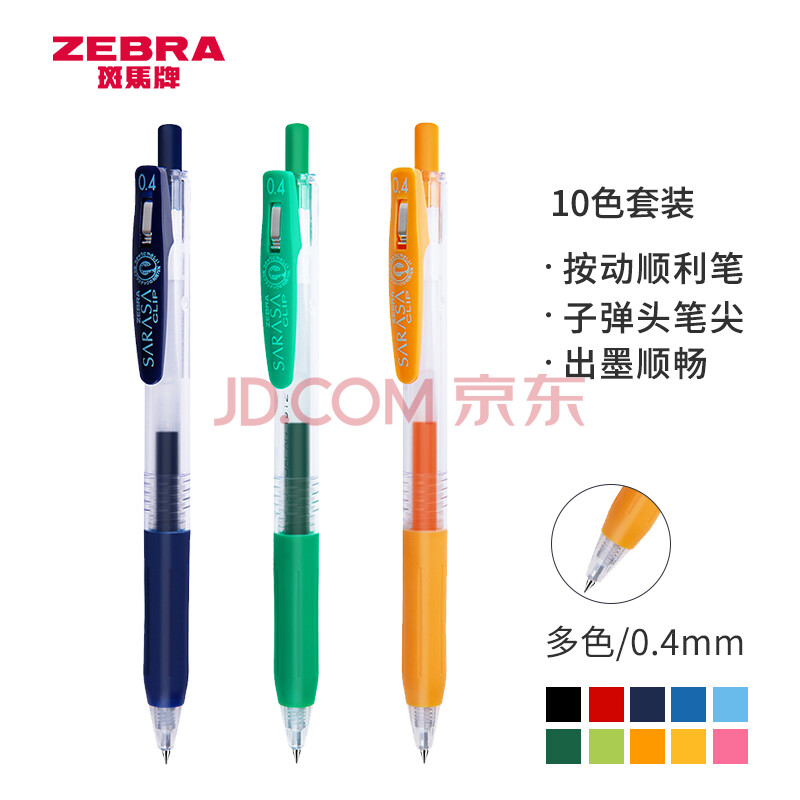 商品相册:斑马牌(ZEBRA)JJS15中性笔 0.4mm按动签字笔 学生彩色手账笔重点标记笔 JJS15-10CA 10色套装第