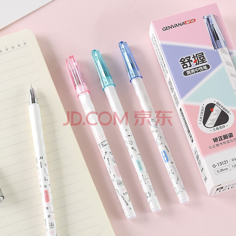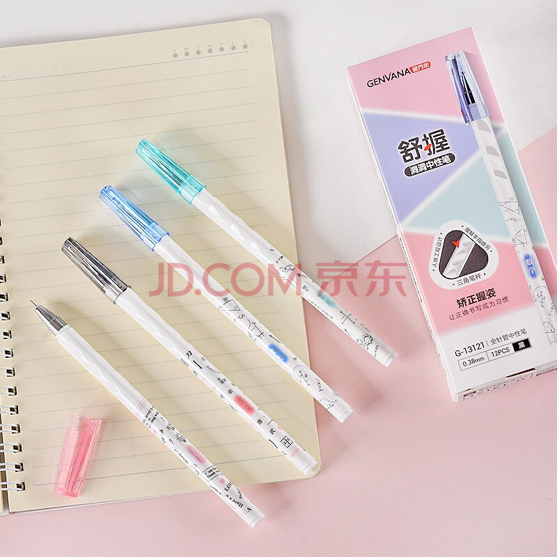 商品相册:金万年【正姿洞洞笔】中性笔0.38mm黑色全针管签字笔学生拔帽水笔办公用品12支/盒G-13121-001第