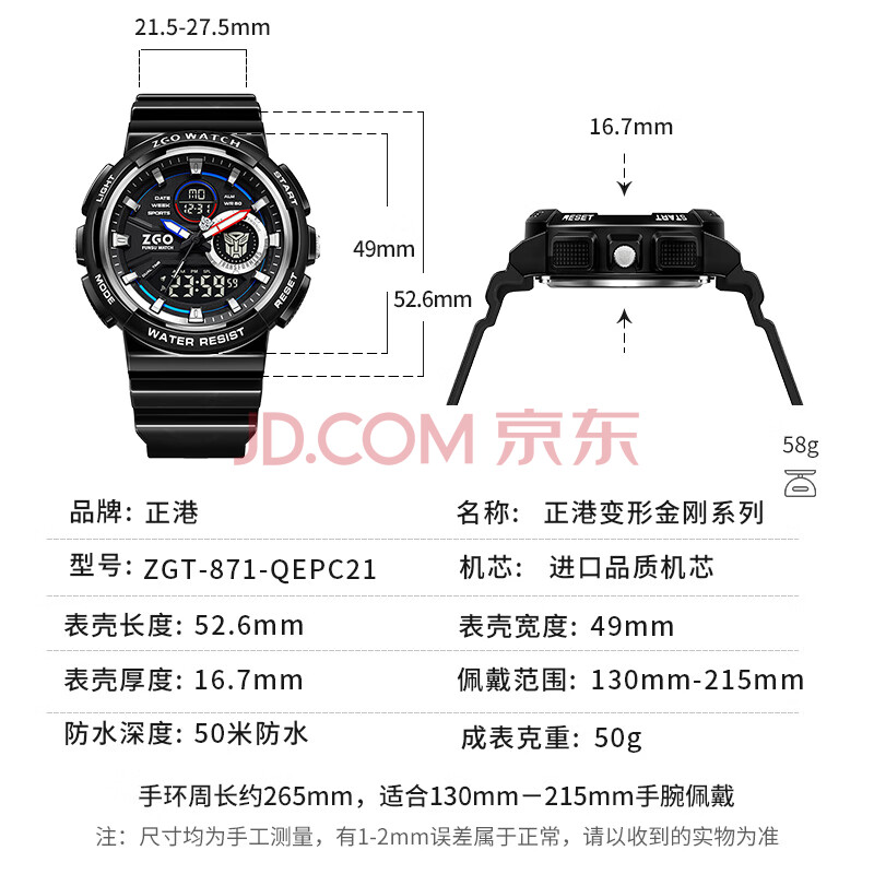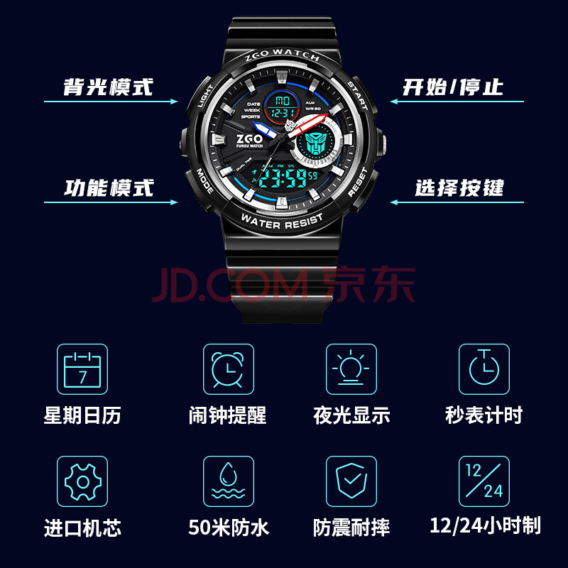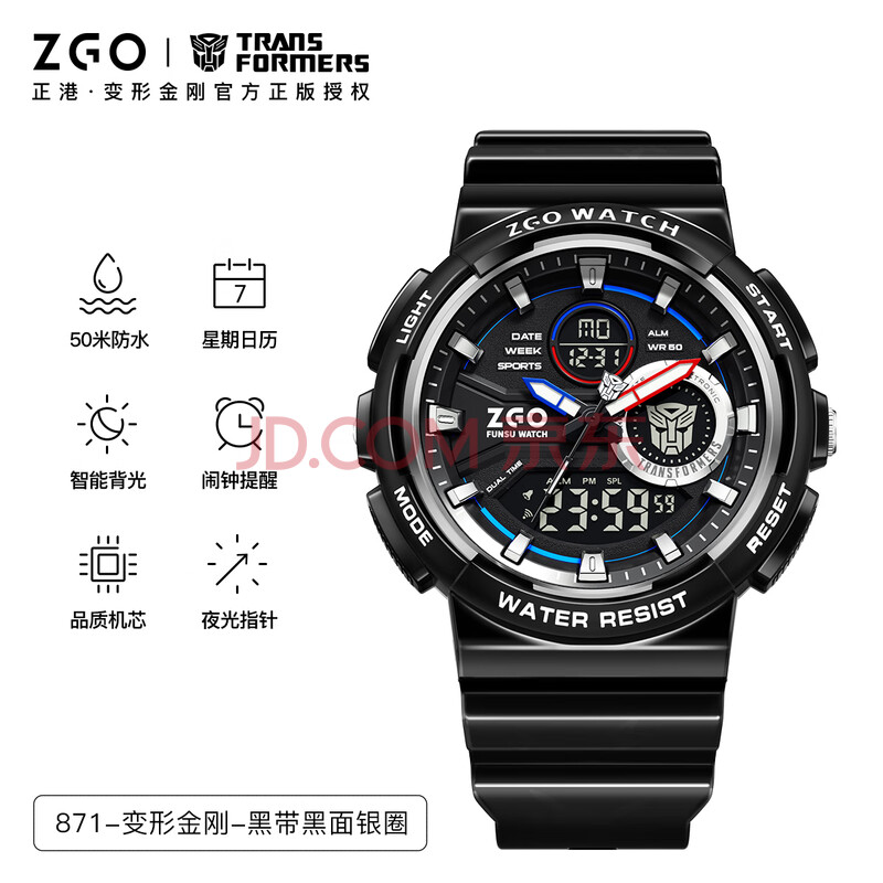 商品相册:正港(ZGO)x变形金刚 电子手表男学生防水运动初高中生青少年儿童手表 871第
