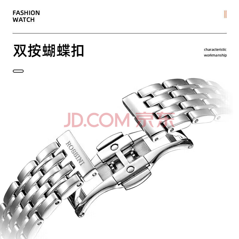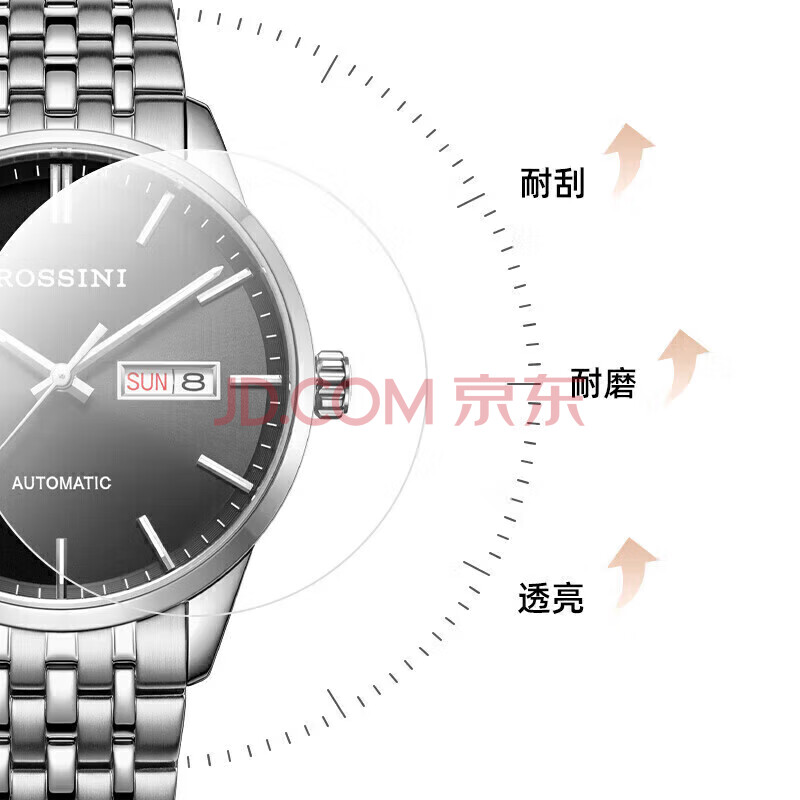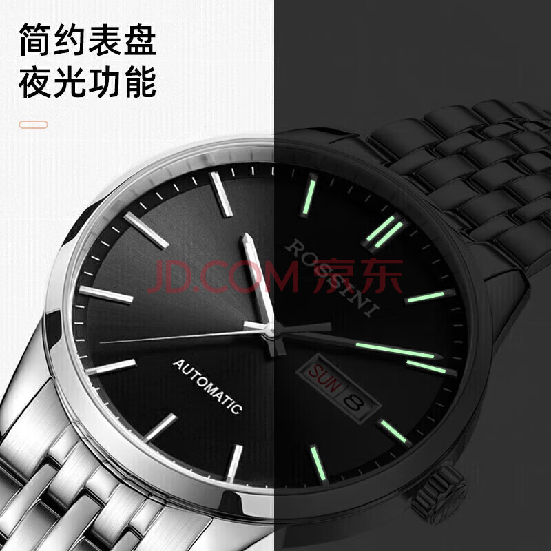 商品相册:罗西尼(ROSSINI)手表男自动机械表黑盘钢带生日礼物国表商务夜光防水 5220099第
