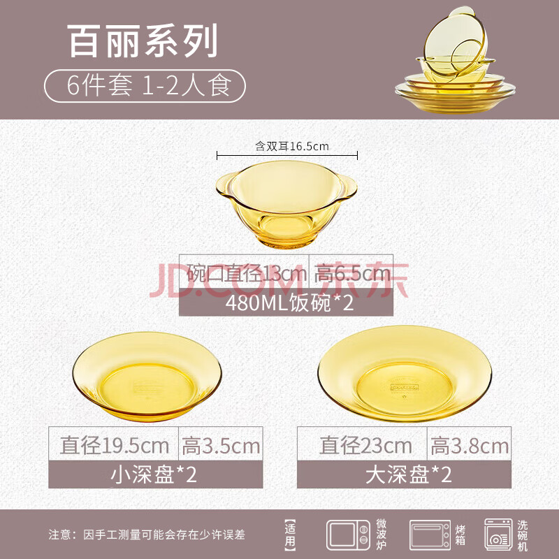 商品相册:康宁餐具套装 pyrex百丽餐具耐热玻璃碗碟套装6件组OV6/CN第