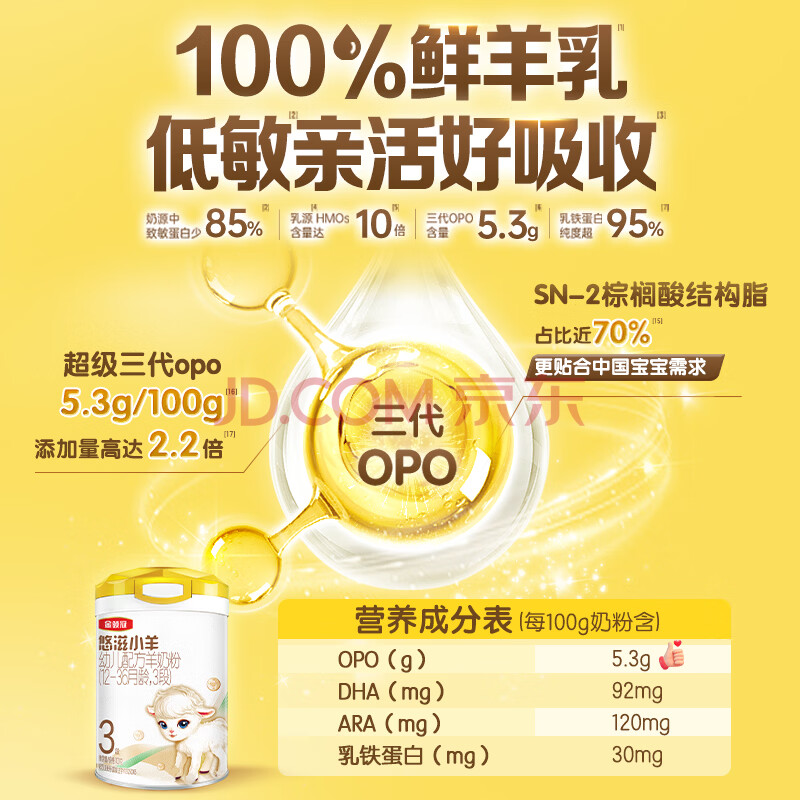 商品相册:伊利金领冠悠滋小羊(低敏好吸收)3段1-3岁羊奶粉700g新老包装随机发第