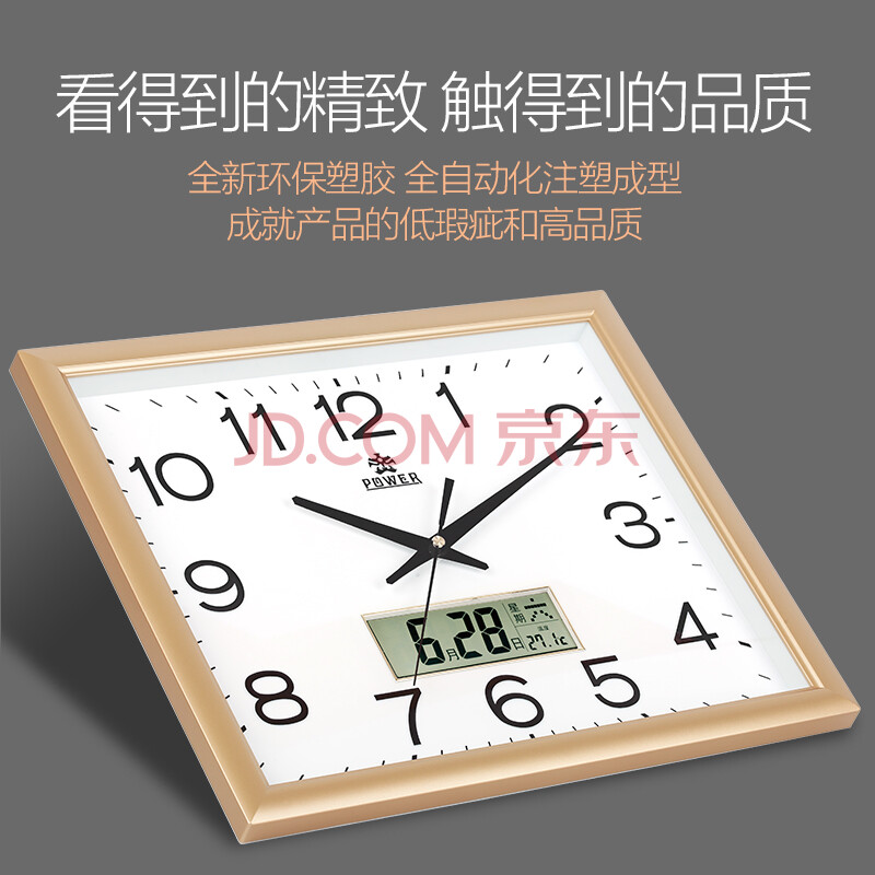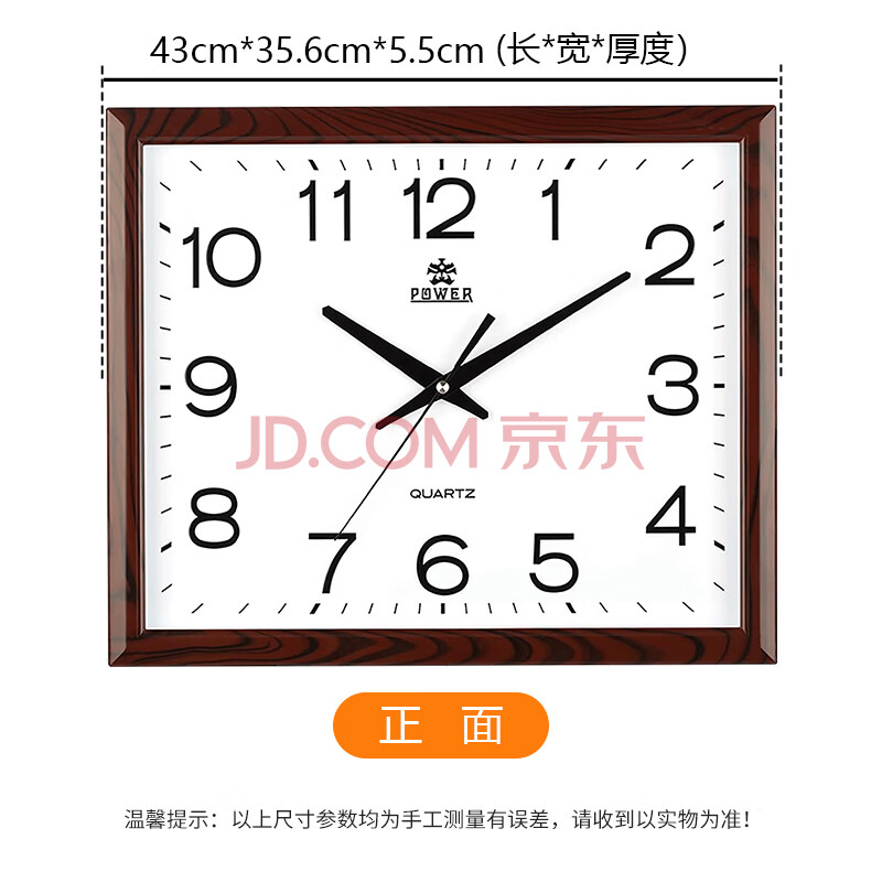 商品相册:POWER霸王钟表 现代简约方形挂钟客厅家用挂墙时钟长43cmBW23040J2第