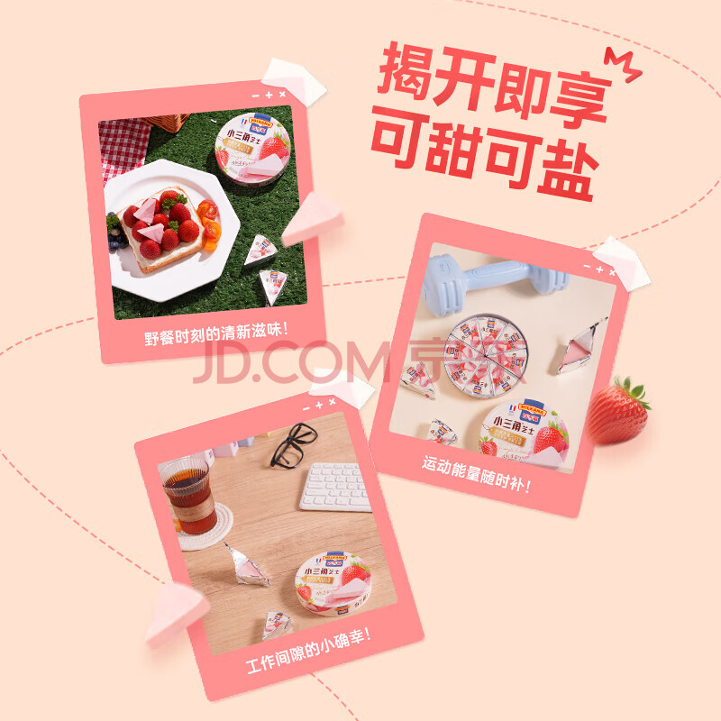 商品相册:百吉福(MILKANA) 小三角涂抹奶酪即食 高钙奶酪芝士 草莓味 140g*2盒 第