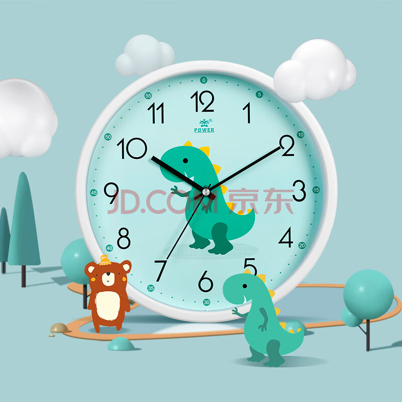 商品相册:POWER霸王挂钟 卡通创意儿童挂表斜面学生认时电子钟30cm恐龙BW23043W8第
