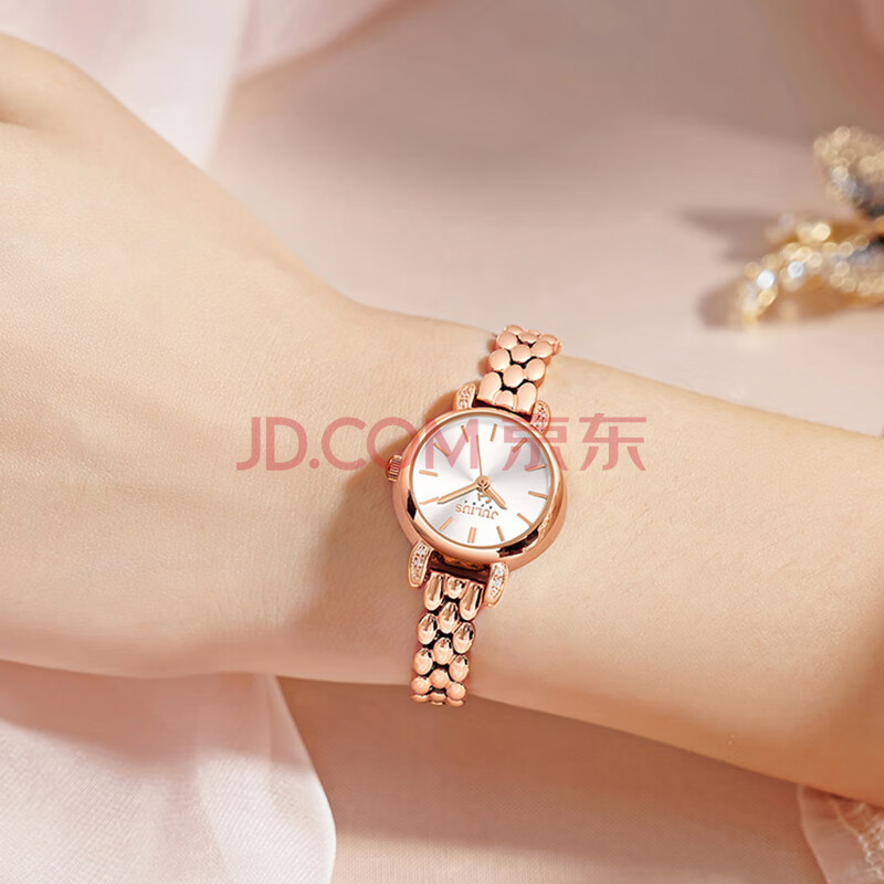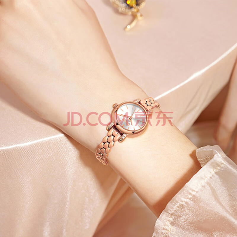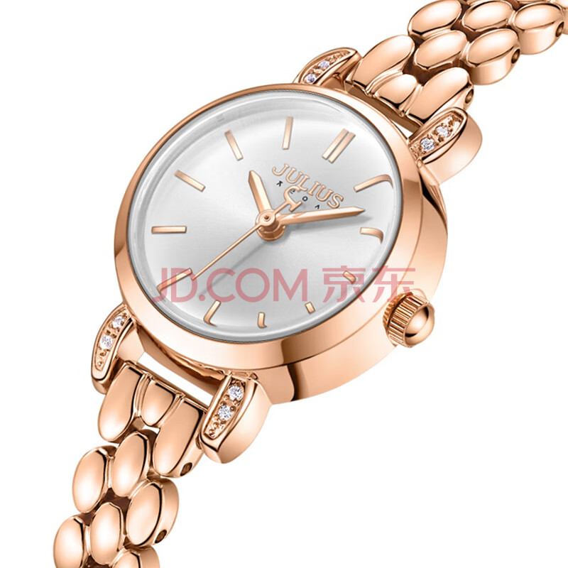商品相册:聚利时(Julius)手表女韩版简约时尚钢带圆形石英优雅学生手链女表玫瑰金JA-1363B第