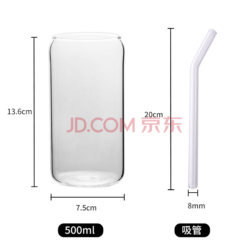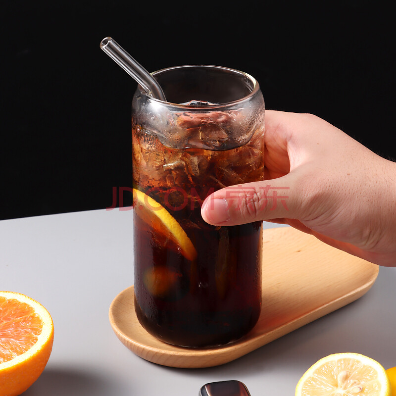 商品相册:拜杰玻璃杯杯子冷饮可乐果汁杯乐扣杯高硼硅玻璃水杯500ML可乐杯+吸管第