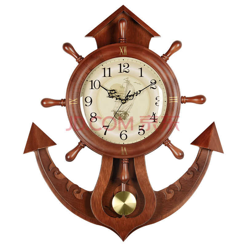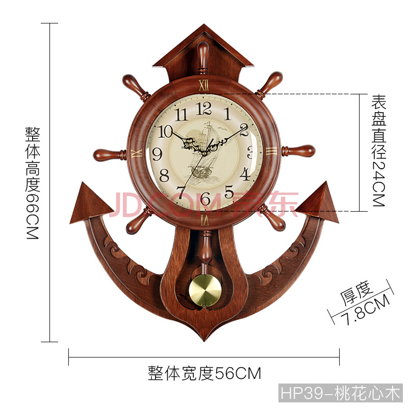 商品相册:汉时(Hense)创意船舵挂钟客厅挂墙时钟挂表壁钟摆钟餐厅石英钟表HP39棕色66cm第