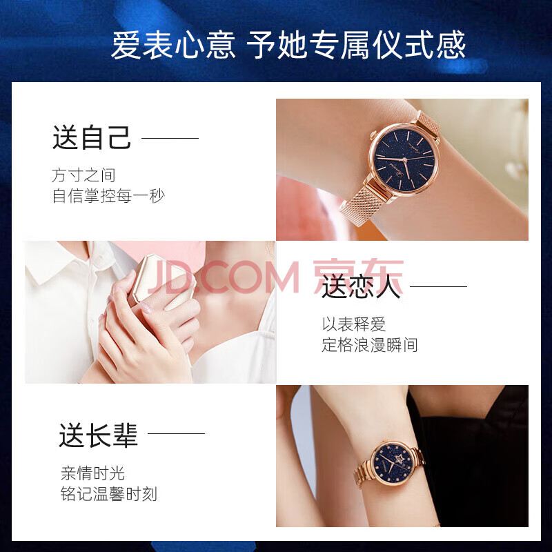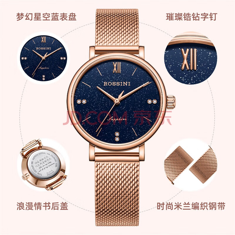商品相册:罗西尼(ROSSINI)手表女款 生日礼物送女友国表气质时尚石英表钢带星空蓝517776第