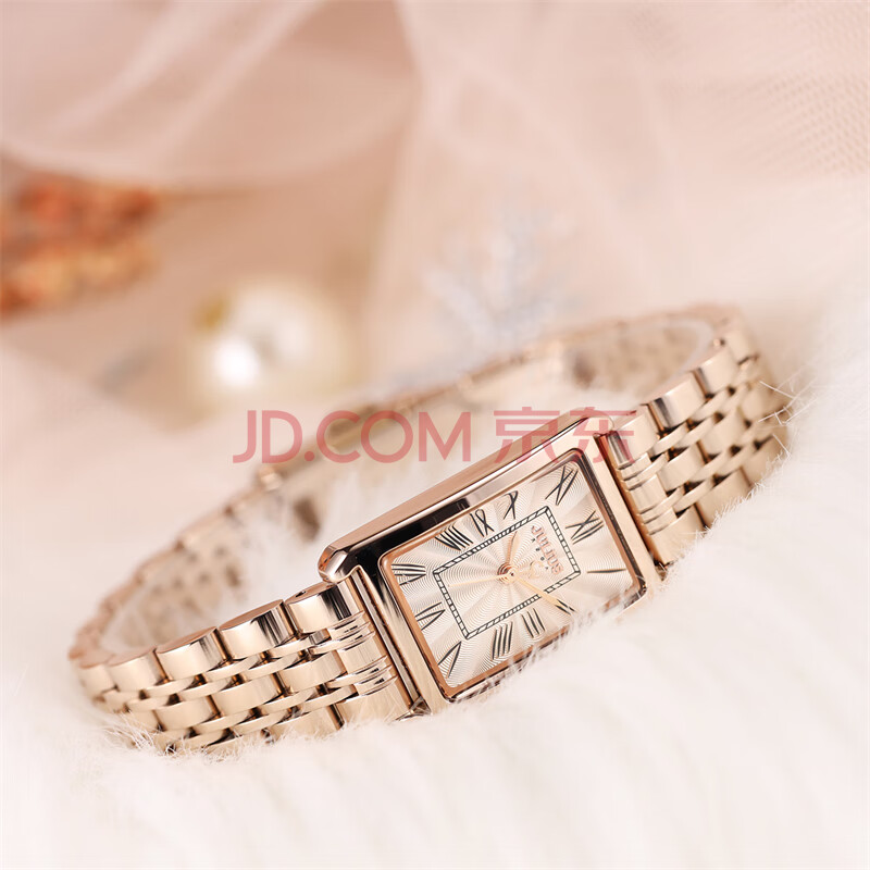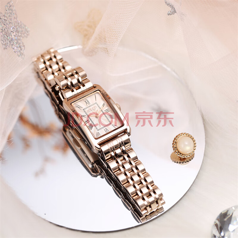 商品相册:聚利时(Julius)手表女韩风轻奢风复古小方表学生钢带石英女士手表玫瑰金JA-1252B第