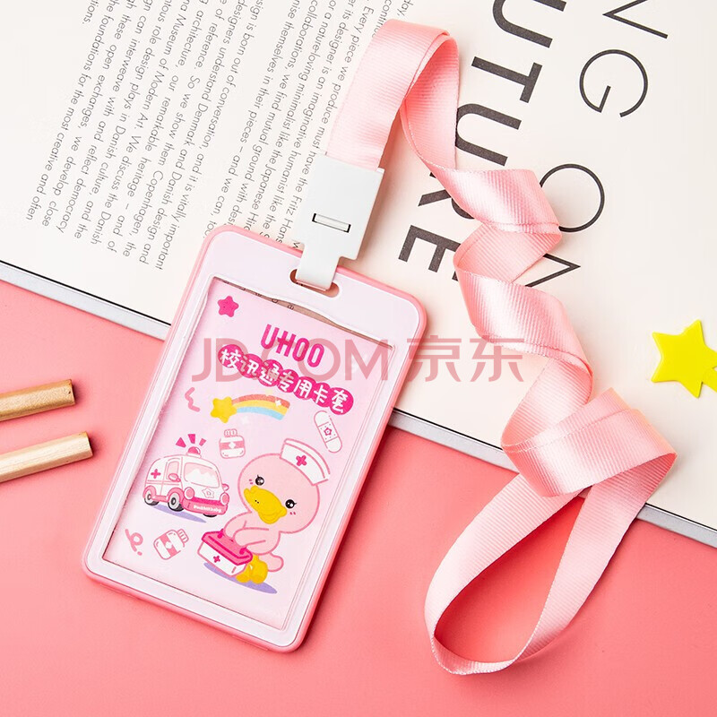 商品相册:优和(68.3*109.8mm)校讯通卡套 加厚工作牌6086 学生幼儿园接送卡套 公交门禁饭卡卡套带挂绳粉色竖式 6个第