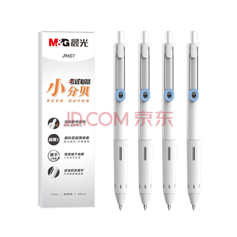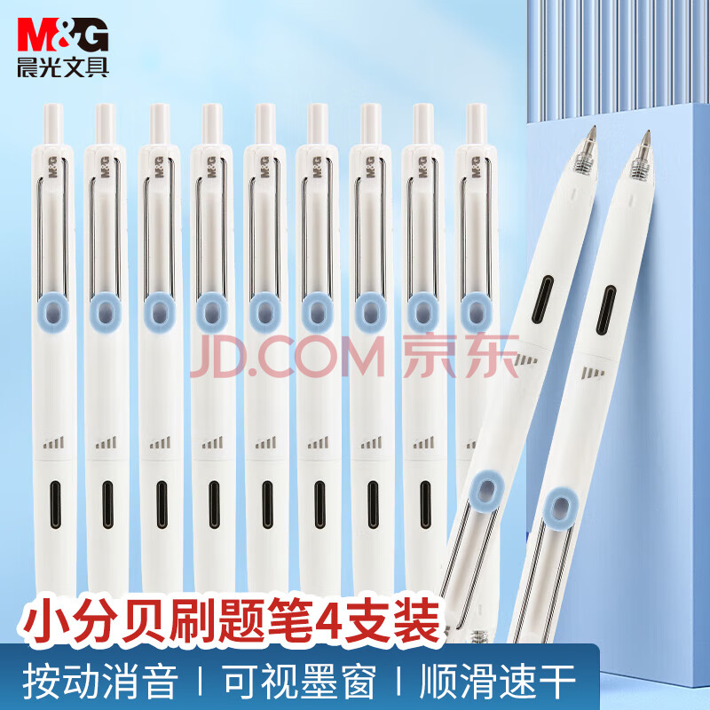 商品相册:晨光(M&G)文具【刷题笔】小分贝消音高颜值0.5mm黑色按动速干中性笔 大容量考试笔 4支装 AGPJ9607A第