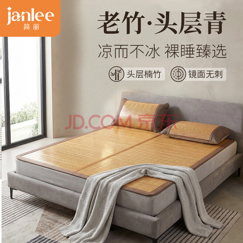 商品相册:简丽悦享碳化竹青竹席凉席双人床席子单只1.5米 【双面可用可折叠】第