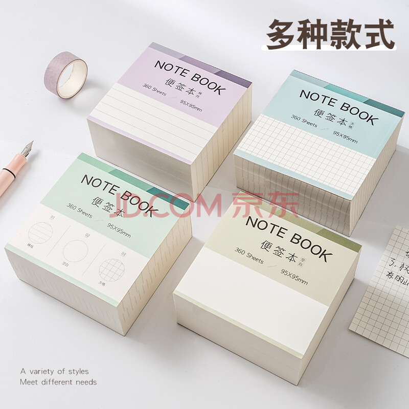 商品相册:三年二班 空白大容量便利贴360张无粘性可撕便签本ins风大号便签纸学生文具学习备忘录留言纸 空白第