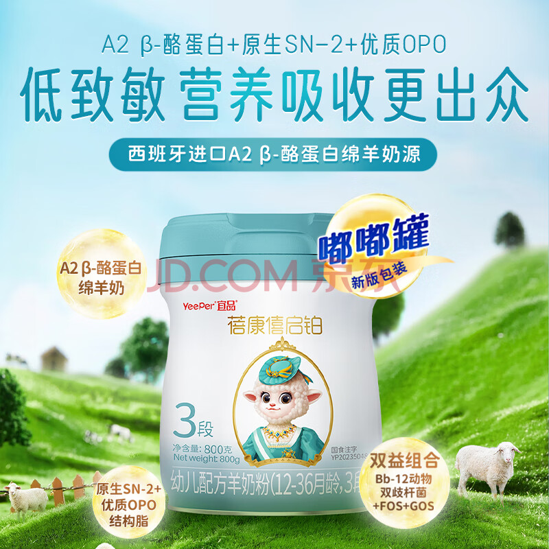 商品相册:蓓康僖宜品启铂婴幼儿配方纯绵羊奶粉3段1-3岁适用800g A2 β-酪蛋白第