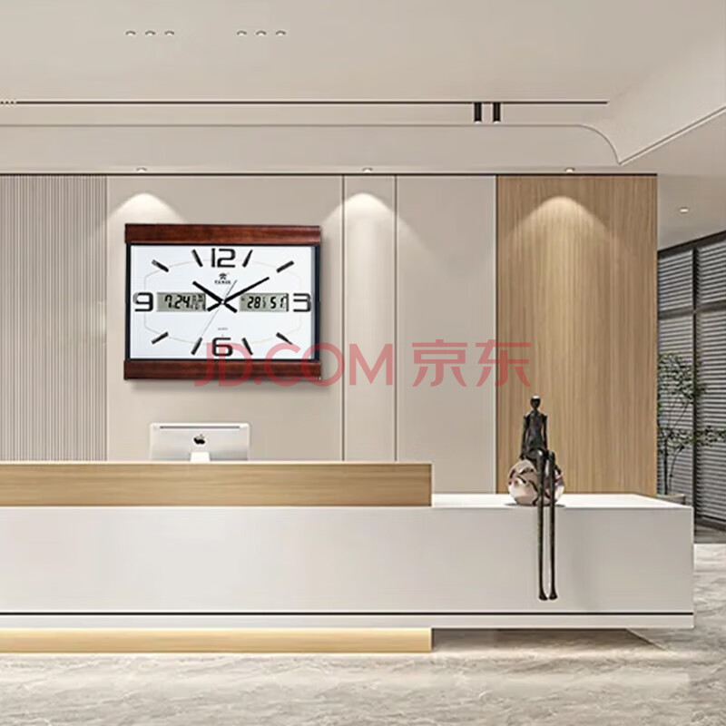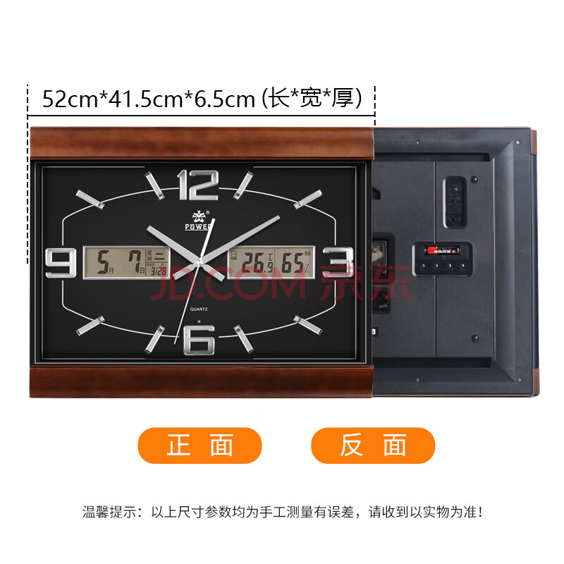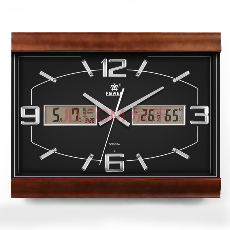 商品相册:POWER霸王大号木质挂钟 长52cm挂墙客厅万年历音乐报时 0101BLMKS第