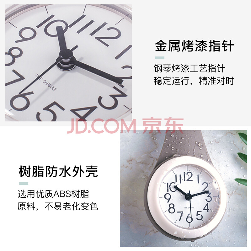 商品相册:BBA挂钟浴室防水厨房卫生间创意家居迷你时钟个性小巧石英钟珍珠白第