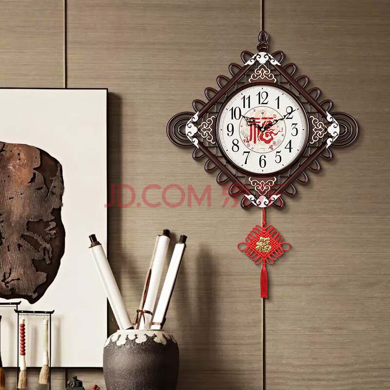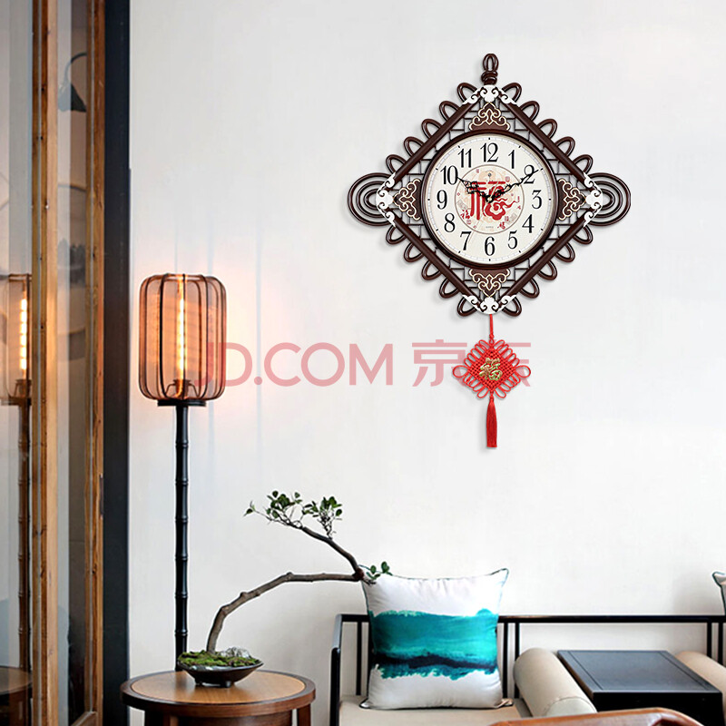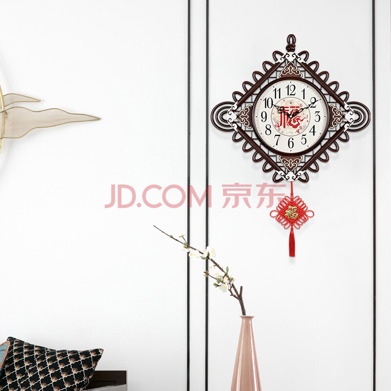 商品相册:北极星(POLARIS)挂钟新中式创意简约时尚中国结时钟12英寸客厅书房钟表55*30cm第