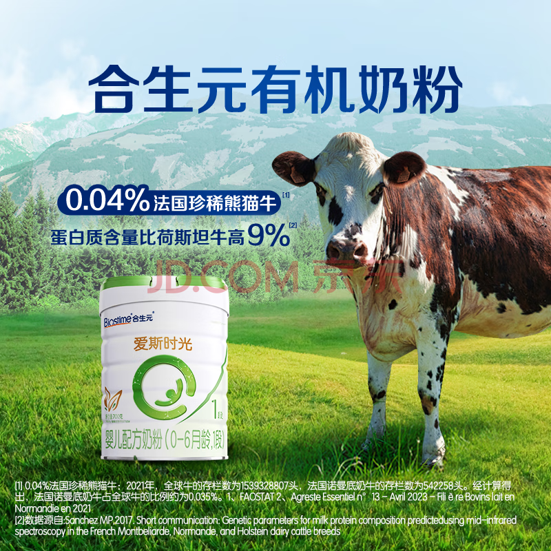 商品相册:合生元(BIOSTIME)爱斯时光 婴儿配方有机奶粉 1段(0-6个月) 700g*1罐 有机奶源第
