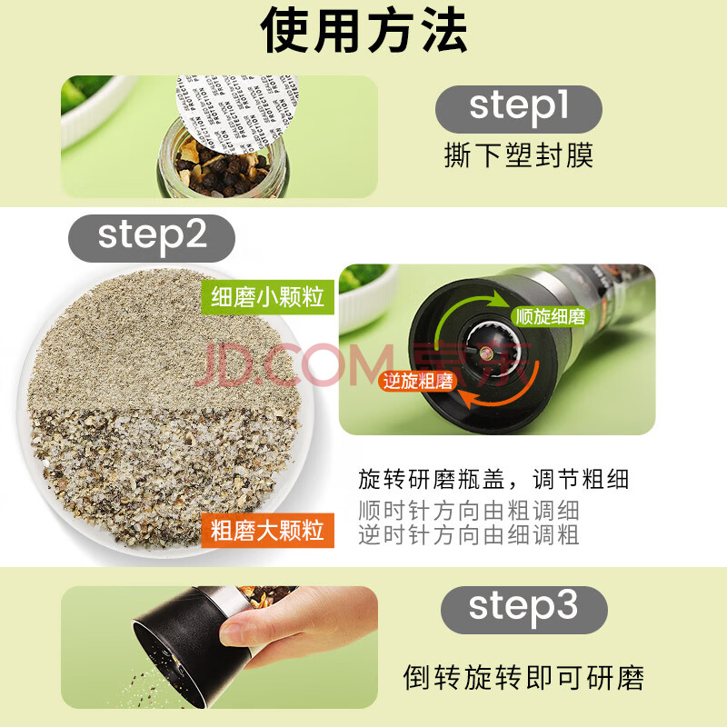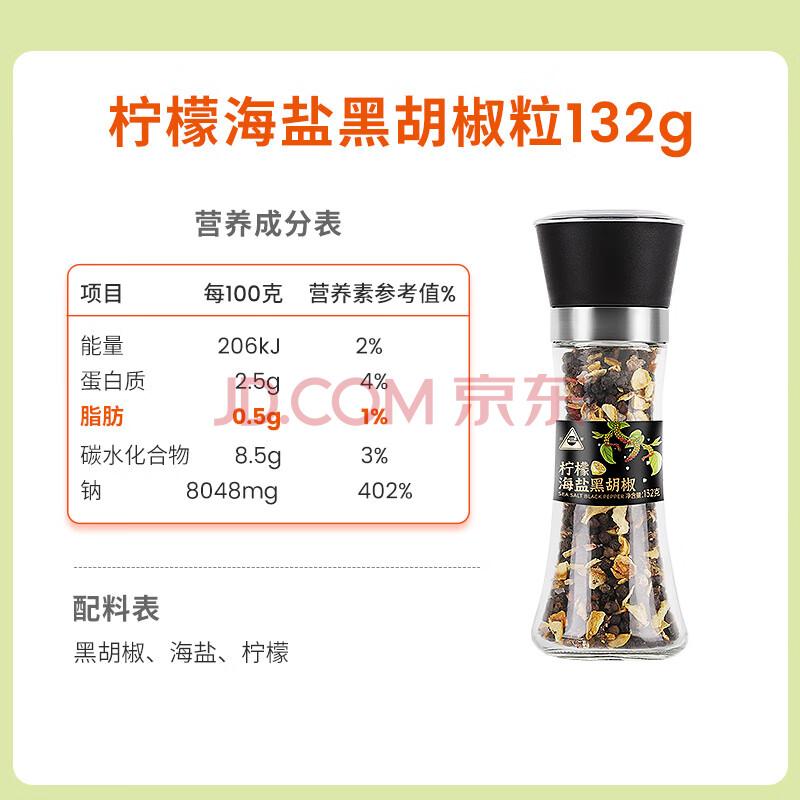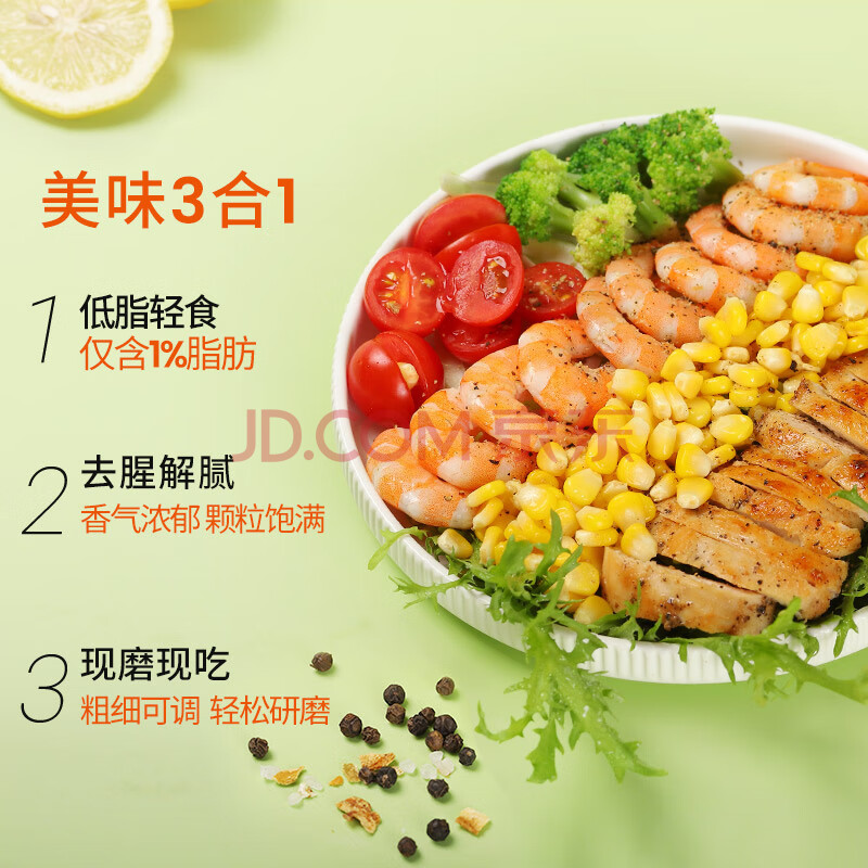 商品相册:川珍柠檬海盐黑胡椒粒132g 低脂肪研磨瓶健身餐牛排鸡胸肉水煮菜调料第