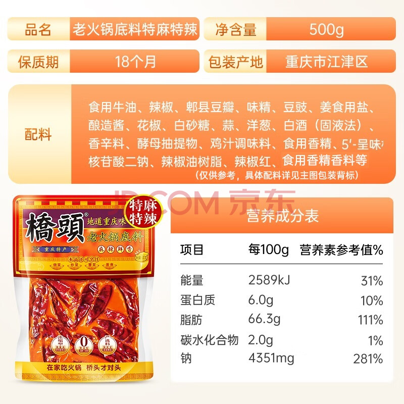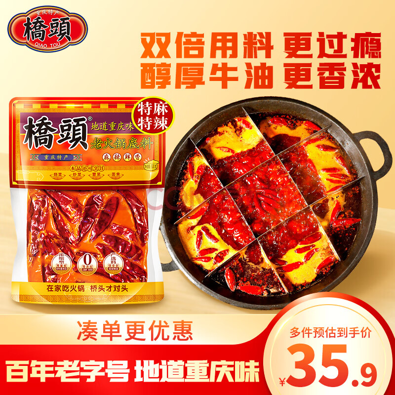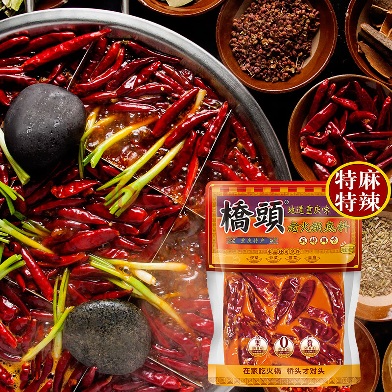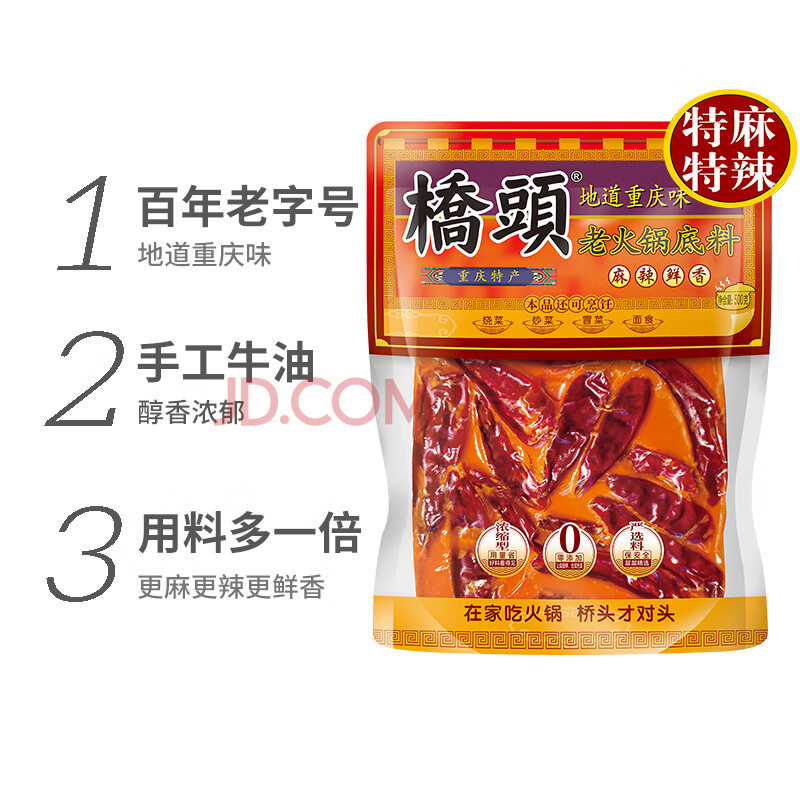商品相册:桥头重庆老火锅底料手工牛油麻辣烫调料特麻特辣500g加麻加辣底料第